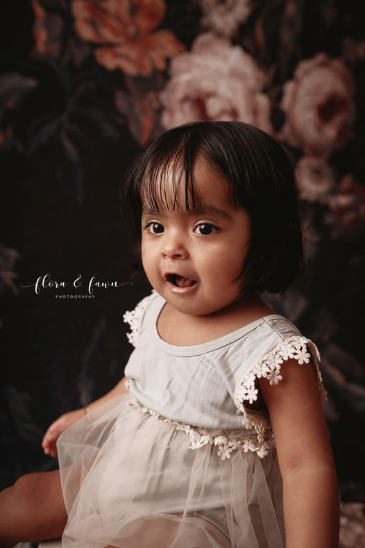 Milestone sessions usually last around 45 minutes to an hour and are done at Flora & Fawn studio.
